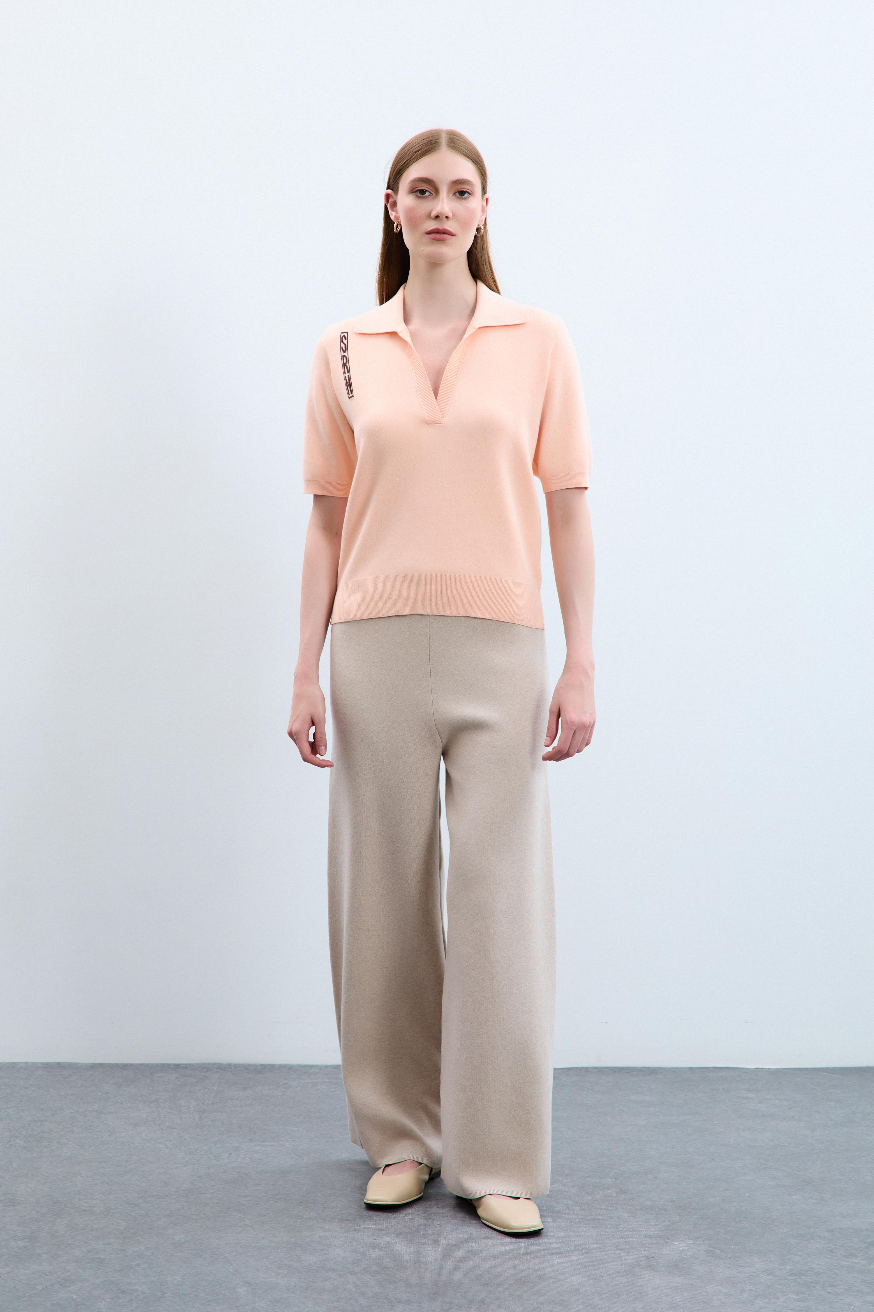 %100 Organik Pamuk Baskı Detaylı Polo Yaka Kazak KZK10652 SOMON