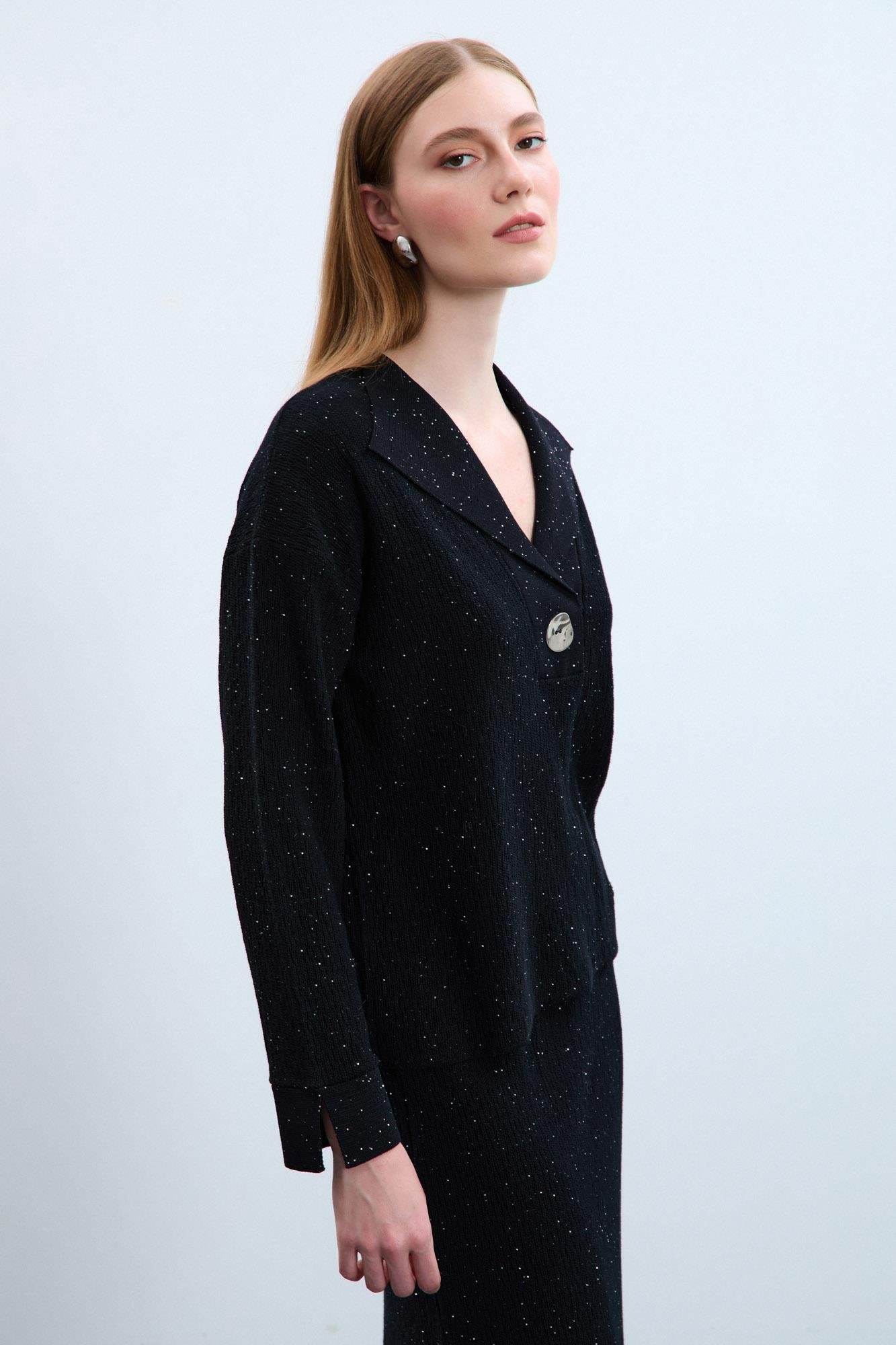 Organik Pamuk Karışımlı Düğme Detaylı Pullu Kazak KZK10714SIYAH
